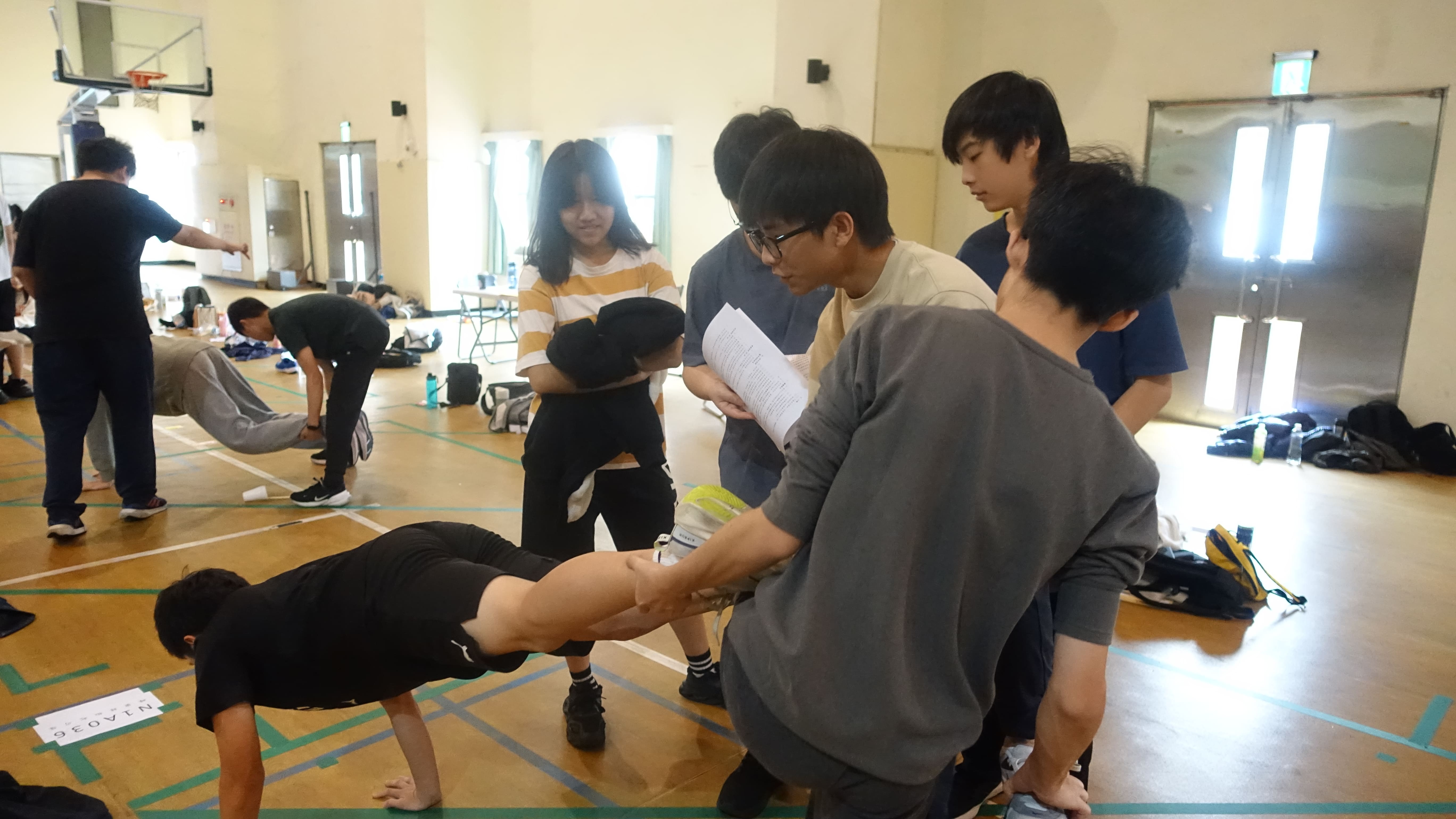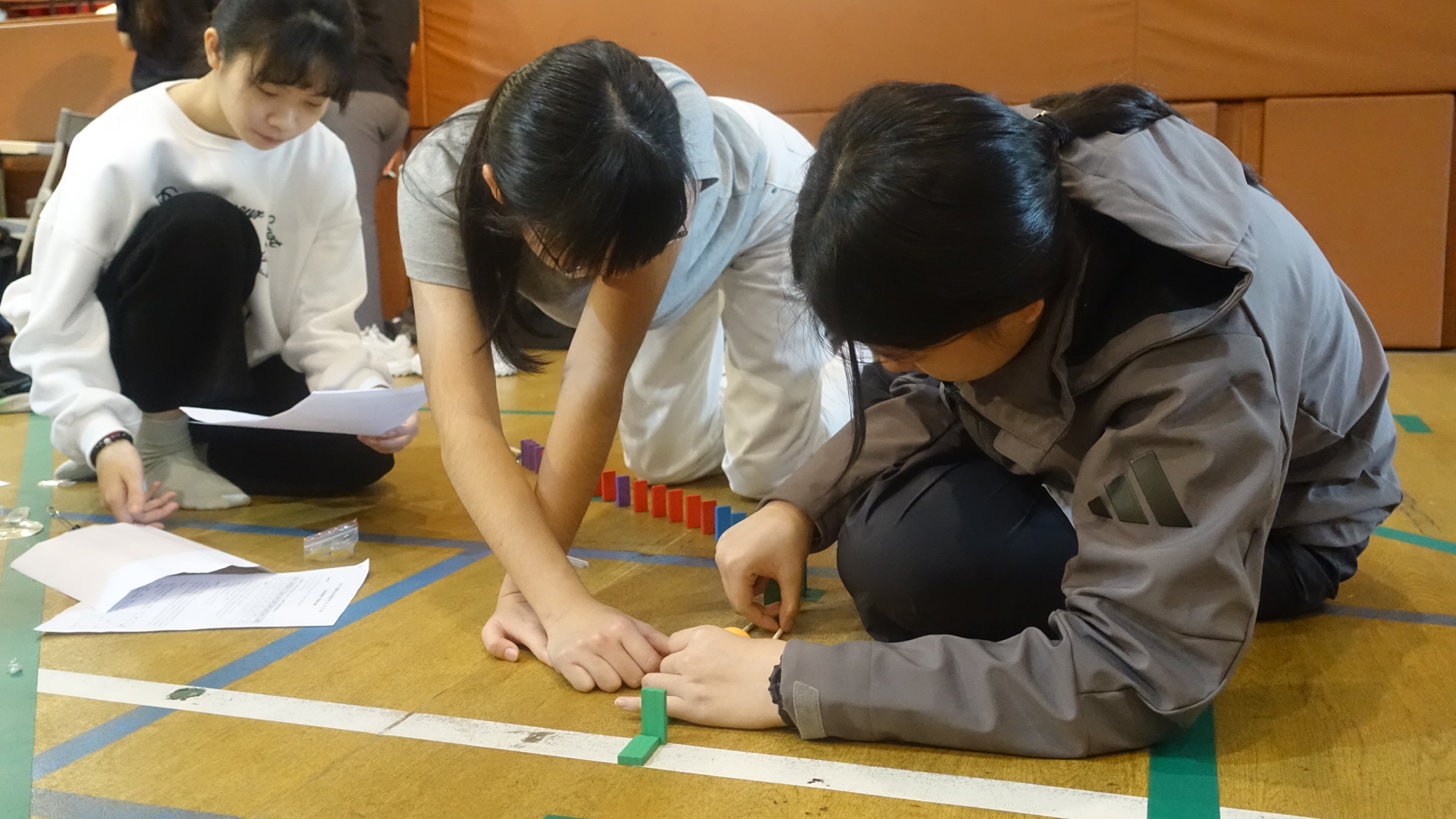 本次實作題「排骨腳撲朔 骨牌眼迷離」,隊伍要在限時內放置60個骨牌,並設計出驅動骨牌倒下的裝置,使骨牌覆蓋住指定目標,不僅考驗隊伍抗壓性,更測驗如何將創意具體實作的能力。體育及其他題目「小姐我想吃薯條」更是讓隊員相互扶持,每個人僅能以部分四肢支撐身體重量並協力移動,使用單支竹筷傳遞塑膠杯,不僅考驗肌耐力,更是隊友間的默契大考驗,各個小隊勤加練習,展現絕佳團隊精神。